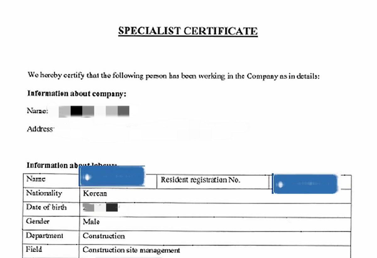 Mẫu giấy xác nhận chuyên gia nước ngoài