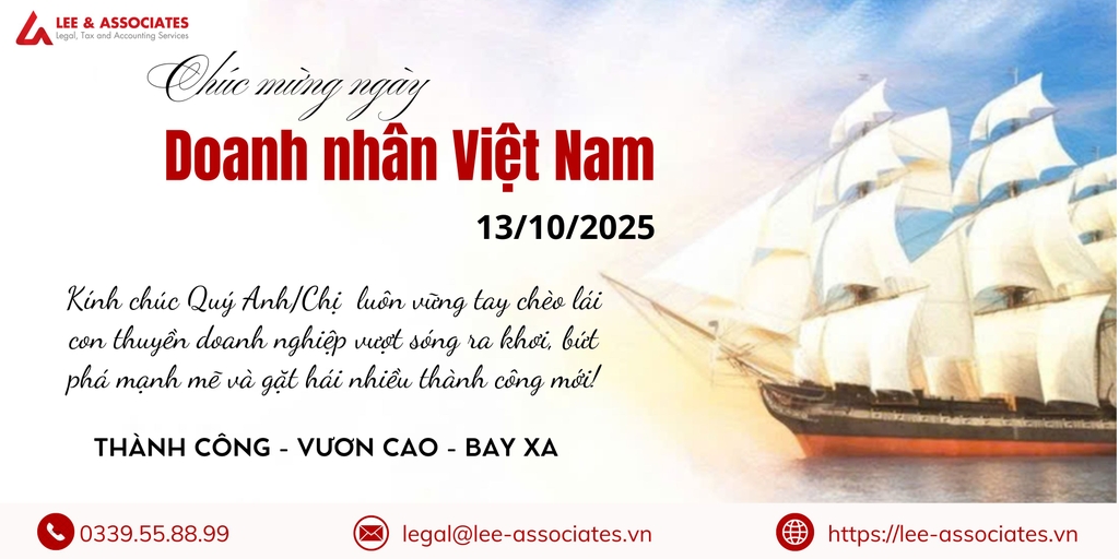 Với vai trò là đơn vị tư vấn và đồng hành pháp lý chuyên nghiệp, Lee & Cộng sự trân trọng gửi lời chúc mừng tốt đẹp nhất đến Quý Doanh nhân nhân ngày 13/10. Chúng tôi thấu hiểu rằng, phía sau mỗi quyết định đầu tư, mỗi hợp đồng ký kết, mỗi chiến lược mở rộng thị trường… đều là những bước đi cần được bảo đảm bằng nền tảng pháp lý vững chắc.