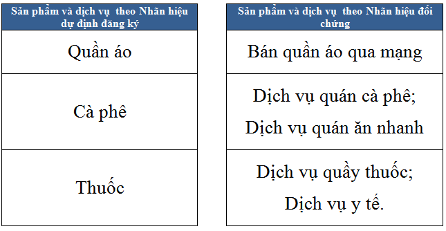 Ngay cả khi 02 nhãn hiệu trùng nhau hoặc tương tự với nhau, chúng chỉ bị coi là tương tự gây nhầm lẫn với nhau nếu sản phẩm/dịch vụ của nhãn hiệu dự định đăng ký có liên quan hoặc tương tự với sản phẩm/dịch vụ của Nhãn hiệu đối chứng.