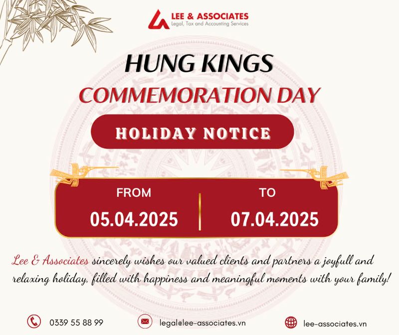 Hòa chung tinh thần "uống nước nhớ nguồn", Công ty TNHH Lee & Cộng sự xin trân trọng thông báo lịch nghỉ lễ Giỗ Tổ Hùng Vương như sau: